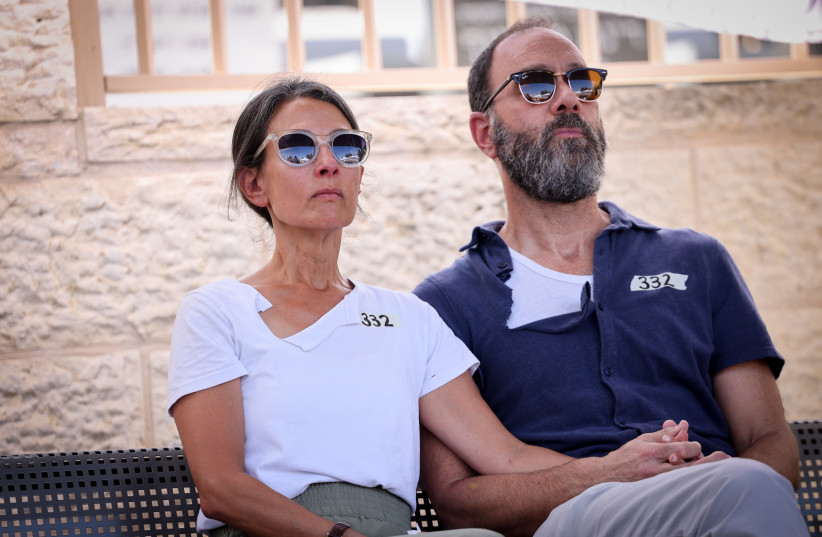 GRIEVING PARENTS Rachel and Jon attend the funeral of Hersh Goldberg-Polin, who was murdered in captivity by Hamas, on Monday in Jerusalem. (credit: YONATAN SINDEL/FLASH90)