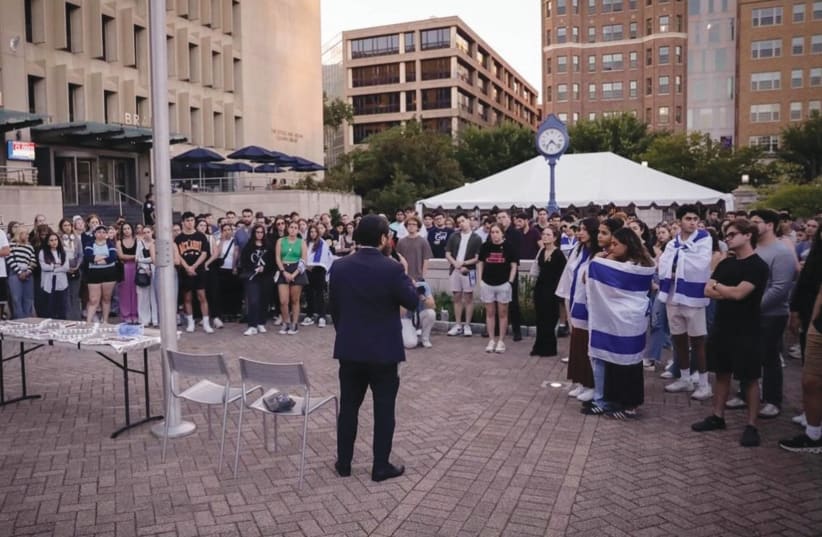 STUDENTS AND community members from across the Washington, DC area congregate at George Washington University’s Kogan Plaza to commemorate the six murdered hostages and support Israel.(photo credit: Shani Glassberg)